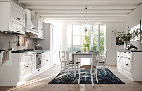 Bucataria Provenza, din MDF opac, furniruit, in stil clasic, cu blat din granit negru, pret la cerere