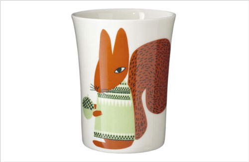 Squirrel (beaker) - Design: Donna Wilson. "Veverita cea isteata s-a trezit de dimineata si-a pornit-o prin padure dupa ghinde si alune". Apoi a mai stat un pic si pe cana s-a oprit. Squirrel este fabricata in Stoke-on-Trent, o localitate din vestul Marii Britanii, care de-a lungul secolelor si-a capatat renumele de capitala portelanurilor fine englezesti. Premiata in cadrul editiei 2010 “The British Design Awards” ca cel mai bun designer al anului, Donna Wilson a lansat recent o colectie simpatica de portelanuri. Fiecare obiect spune o poveste ce reliefeaza pasiunea Donnei pentru ilustratiile naive, puternic impregnate de nostalgie si umor.