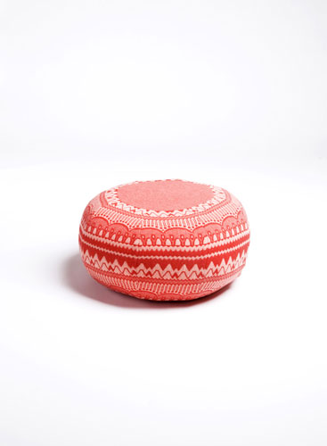 Frank - Design: Donna Wilson. Pouffii Donnei Wilson sunt realizati dintr-o plasa Calico din bumbac ecologic, iar aceasta plasa este umpluta cu fibra din PET-uri reciclate. Acesti pufi sunt tapisati pe segmente, intregul aratand precum o portocala. Sunt disponibili in diverse dimensiuni, culori, pattern-uri si forme. Husa este dintr-un material semnat original DonnaWilson si realizat in colaborare cu brandul britanic SCP. Este facut din lana 100% naturala, toarsa si vopsita in Marea Britanie, iar apoi tesuta in Tara Galiilor.