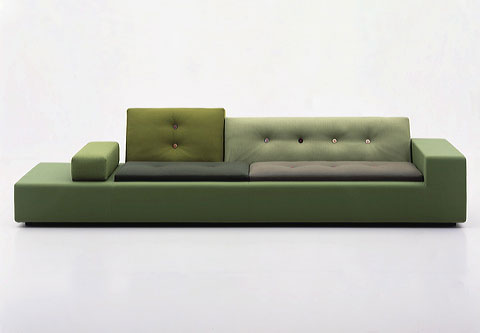 Polder - Design: Hella Jongerius. In Olanda, cuvantul "polder" se refera la terenul artificial recuperat din mare prin intermediul unor diguri si canale de drenaj. In cazul nostru, Polder este o canapea joasa, cu linii drepte, imbracata in materiale naturale in diverse combinatii de culori si tesaturi, iar pernele sunt stilizate prin niste nasturi de diverse modele. Dimensiunile variaza in functie de numarul de locuri. Structura este din lemn, iar pernele sunt umplute cu chips-uri din poliuretan si microfibre, iar sezutul cu spuma poliuretanica si poliester.