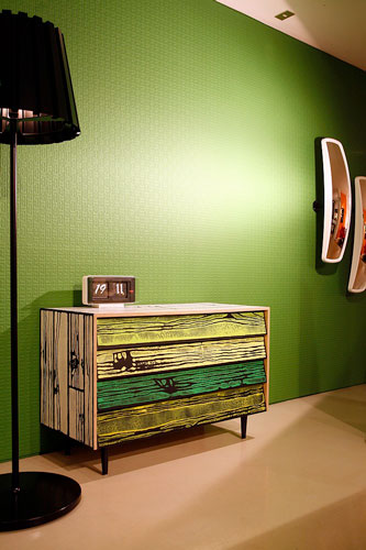 Wrong Woods - Design: Richard Woods & Sebastian Wrong, 2007. O comoda cu sertare, ce imbina motivele grafice ale lui Richard Woods cu munca desavarsita a lui Sebastian Wrong. Comoda este realizata din placaj de lemn, pictat si lacuit transparent.