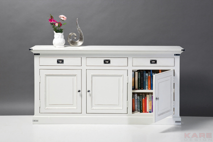 Albergo 3 Doors, 3 Drw. - Bufet alb, din lemn masiv de acacia, cu 6 sertare. Pret: 5.377 lei.
