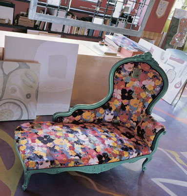 ISofa - sezlong shabby chic, cu husa imprimata cu motive pop-art. Design Moda Collection.