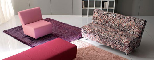 Scioni - O compozitie ce imbina perfect texturile uni cu patternurile florale intr-un ambient indraznet. Piesele colectiei Scioni au structura poliuretanica si tapiserie din material textil sau piele. 172 x 74 x 85 cm / canapea. Pret la cerere