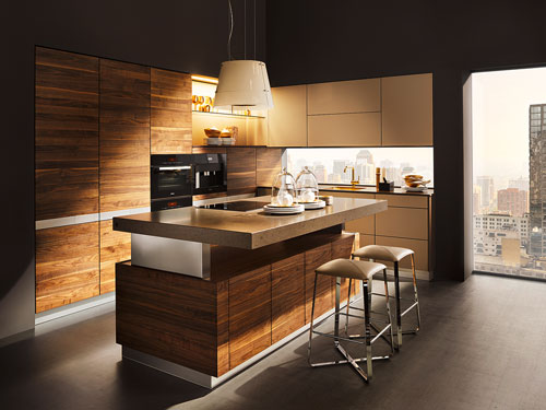 Bucatarie K7 - TEAM 7 - Bucataria are un design cu blat de lucru reglabil. Elementul insula se poate regla in inaltime, ajungand pana la 114cm inaltime. Bucataria K7 nu prezinta manere, folosind in schimb tehnologia Touch cu inchidere amortizata. Designed by Kai Stania.