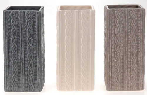 Knitted - Vaza din ceramica glazurata, alba, gri sau bej. Pret: 46 lei.