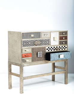 Cabinet Chalet 13 Drawers - Cabinet din lemn de mango, MDF, sticla mozaicata, metal alb si os de camila.