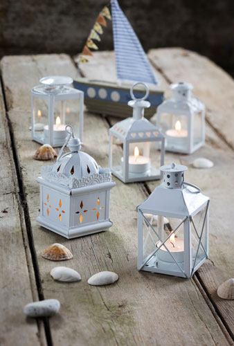 In ceea ce priveste accesoriile decorative, pentru a-ti infrumuseta baia, poti intotdeauna sa apelezi la lumanari. Cu ajutorul lor, vei reusi sa creezi o atmosfera primitoare, boema si intima, in acelasi timp. Cele mai indicate suporturi pentru lumanari sunt cele de tip felinar, metalice, precum cele din imagine, pe care le poti amplasa pe pardoseala, polite, marginile cazii sau le poti atarna.