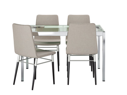 GLIVARP/ PREBEN - Masa si 4 scaune. Blatul din sticla securizata este rezistent la pete si usor de intretinut. Pret: 2.695 lei.