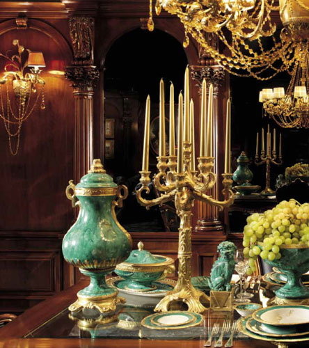 Set de masa din portelan pictat manual si suflat cu aur coloidal de 24 K, colectia Grande Impero, pret la cerere.