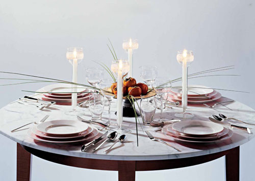 Vesela si sfesnic din portelan si sticla, design Oscar Tusquets, pret la cerere.