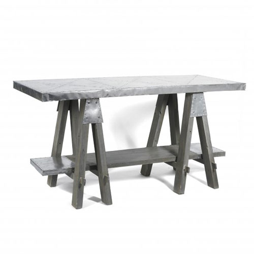 Masa High Metal, din lemn, cu blat din metal si suport pentru picioare. Dimensiuni: 73 x 185 x H 74 cm. Pret: 1.330 lei.