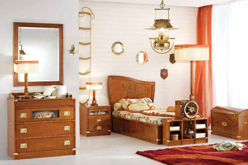 Compozitie pentru dormitor formata din pat, noptiera, dulap si oglinda, din colectia Vecchia Marina, pret la cerere.