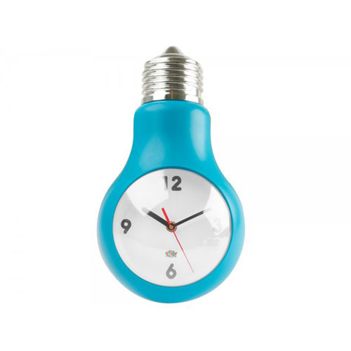 Ceas de perete Bulb, din ABS, haios si plin de sarm, imita conturul unui bec. Necesita 1 baterie tip AA (nu este inclusa). Dimensiuni: 35,5 x 19 cm. Culori disponibile: albastru. Design: Silly Team. Pret: 77 lei.
