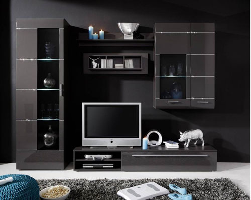 Living Frame - Biblioteca cu front: antracit lucios. Corp: finisaj antracit. DImensiuni: L283xH197xA47 cm. Include 4 seturi iluminare. Decorat SWAROVSKI. Pret: 4.190 lei.