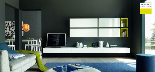 Compozitie living, cu fronturi lucioase alb/verde. Pret la cerere prin casaitalia Cluj Napoca