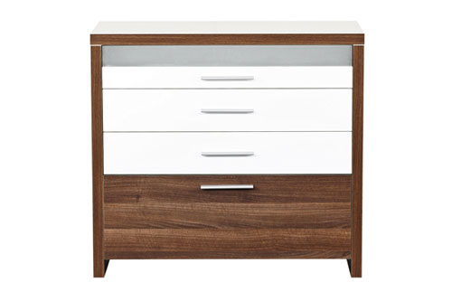 Venus - Comoda 3 sertare + 1 usa rabatabila nuc/alb, din PAL melaminat. Pret: 643 lei.
