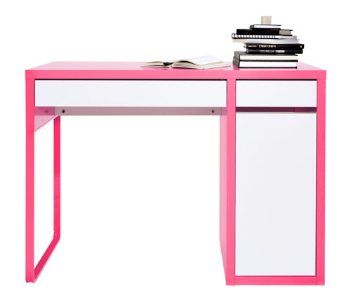 MICKE - Birou, alb, roz, din PAL si MDF. Pret: 299 lei.