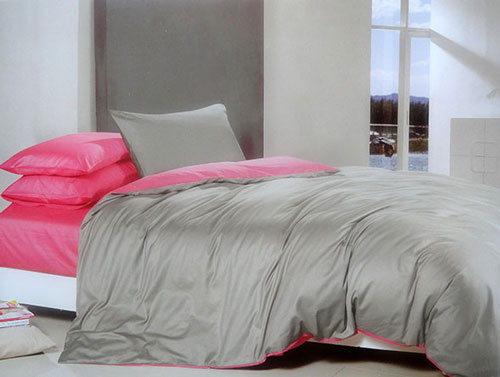 Lenjerie de pat din bumbac satinat Praga - Unic la modelul de lenjerie de pat Milano este combinatia calda de culori surprinzatoare. Nuante tari de roz si gri fac parte dintr-o paleta cromatica feminina intensa, o alegere inedita pentru o lenjerie de pat. Setul de asternut de pat include: cearceaf de pat, cearceaf de pilota si doua fete de perne. Pret: 199 lei.