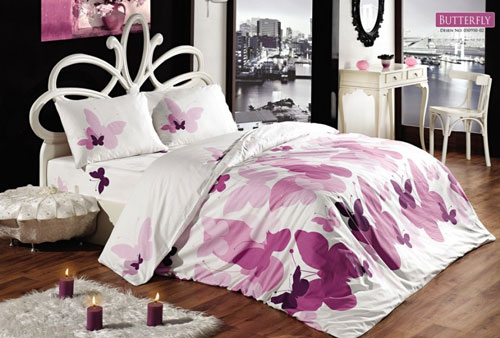 Lenjerie de pat din bumbac ranforce Begenal Butterfly lila 2 persoane - Dimensiuni: cearceaf pat: 240x260 cm, cearceaf pilota: 200x220 cm, 2 x fata perna: 50x70 cm. Pret: 228,28 lei.
