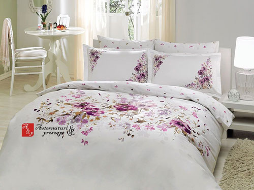 Lenjerie de pat de lux satin Tac Camila lila 2 persoane - Lenjerie de pat bumbac dublu satinat 100%. Pret: 425,53 lei.