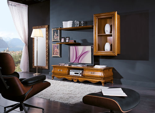 Leonardo - Tonuri calde de lemn, calitatea detaliilor, desen liniar gratios. Mobilier artistic proiectat si fabricat in conformitate cu tehnici stravechi ale originalelor pe care le-au inspirat. Confortabil si complet in fiecare detaliu, se va potrivi in orice spatiu mare sau mic. Dimensiuni: TV Stand cu incrustatii 2 sertare si deschidere centrala L191 x 60 x h 47 cm. Pret : la cerere.