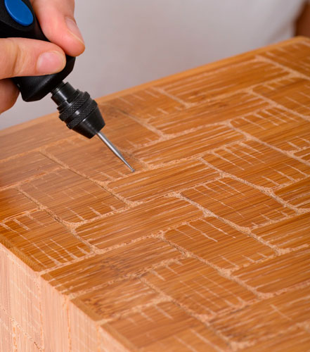 Cuplati freza de gravare 107 la unealta Dremel 7700 si gravati tiparul. Adaugati detalii gravurii cu unealta Dremel 7700 si freza de gravare 106.