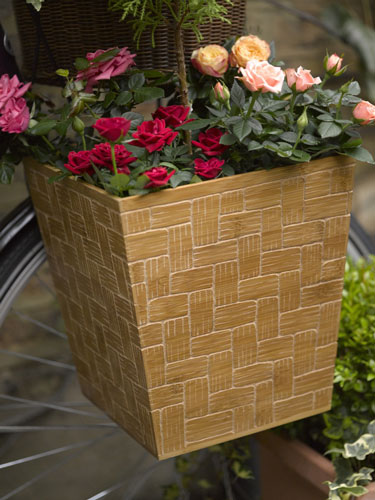 Daca doriti sa fixati cosul pe bicicleta sau sa-l prindeti pe peretele din gradina, realizati doua orificii in partea superioara a cosului cu ajutorul uneltei Dremel 300 cu setul de burghie de lemn 636 si prindeti cu cleme metalice rezistente. O alta varianta ar fi sa prindeti cosul pe o parte a bicicletei, formand un „tablou” pe peretele gradinii dumneavoastra. Apoi, fie puneti plasa de sarma in interiorul cosului din lemn si creati un aranjament floral, fie umpleti cu pamant si plantati trandafiri si iedera.