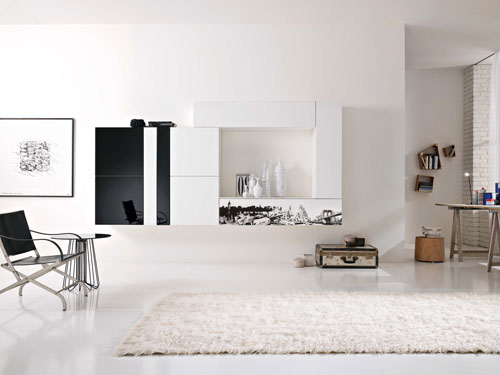 Mobilier pentru living, din MDF lucios, pret la cerere.