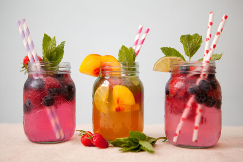 Fiind o petrecere, bauturile sunt nelipsite. Poti prepara diverse cocktailuri, cu fructe, perfecte in special in sezonul cald. Surprinde-ti invitatii si serveste-le intr-un mod inedit, spre exemplu, in borcane sau in sticlute, adaugandu-le paie colorate si felii de fructe, pe marginea lor. Acest sfat se aplica si in cazul gustarilor, pe care le poti aseza pe placi ceramice sau tocatoare din lemn.