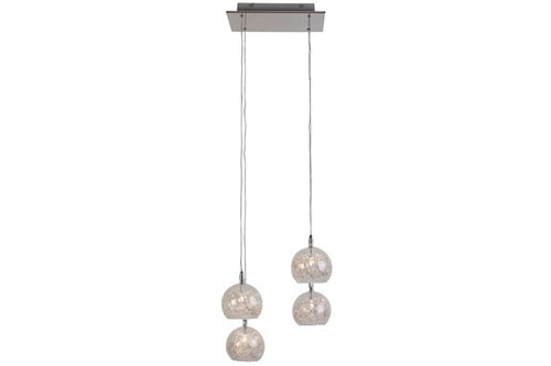 Artesia - Lustra cu finisaj cromat, din metal si sticla. Dimensiuni (lxLxH): 32x32x130 cm. Pret: 495 lei.