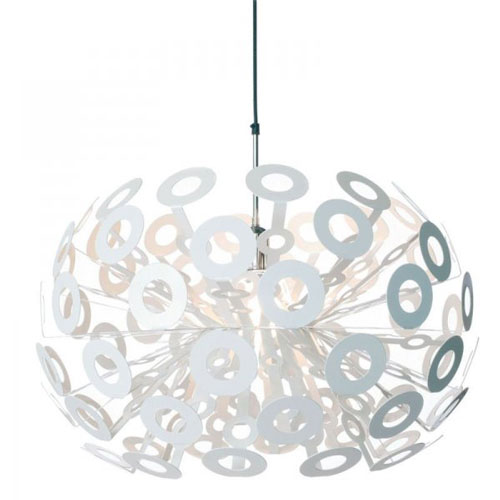 Lustra Dandelion, realizata din aluminiu si otel carbon, cu ajutorul laserului. Dimensiuni: Ø 50 x H 38 cm. Surse: 1 x E27/100W. Culori disponibile: argintiu. Pret: 1.326 lei.