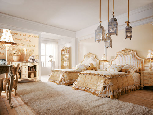 Dormitor Sogni e Amore, format din doua paturi, corpuri de iluminat suspendate, dulap haine. Pret la cerere.