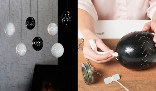 Utilizarea oualor de strut, decorate cu modele decupate, vopsite, atarnate şi iluminate pot avea un mare efect pentru iluminarea neconventionala a petrecerilor dumneavoastra. Urmati ghidul nostru pas cu pas si iluminati un colt delimitat pentru a deveni o adevarata tema de discutie. Aveti nevoie doar de unealta Dremel 3000 si puteti incepe!
