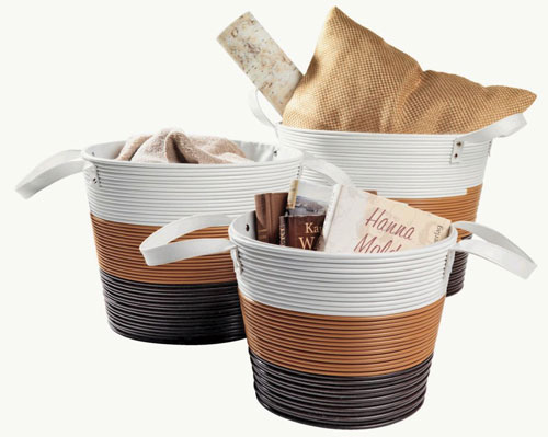 Cosuri impletite - Material: impletitura hartie. Culoare: alb, cognac si maro inchis. Dimensiune: Ø27/H 20 cm. Pret 24,99 lei.
