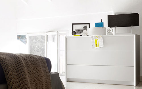 Calligaris - Comoda Password. Cele trei sertare sunt dotate cu un mecanism util de deschidere push-pull. Front de lemn cu linii moderne, curate. Pret: 915 euro +T.V.A.