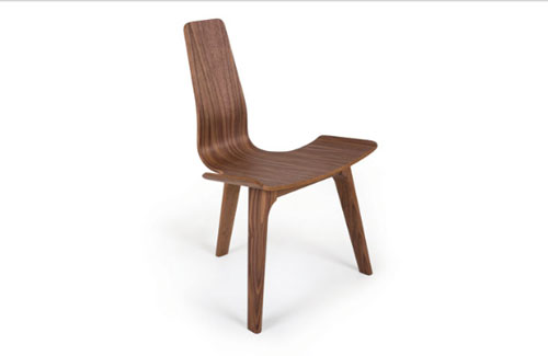 Prezinta o forma unica, cu un sezut curbat sustinut de trei picioare. Stabil si discret, in finisaj de nuc negru sau stejar alb, se incadreaza de minune la masa, fara a domina celalalte obiecte din jur.