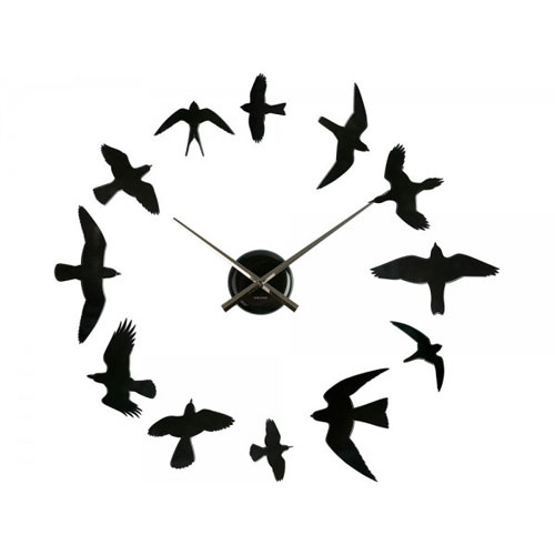 Ceas perete Birds - Ceas perete. Contine 12 piese detasabile, din plastic, in forma de pasari, de diverse marimi si forme, pe care le poti aranja dupa cum doresti. Necesita 1 baterie tip AA (nu este inclusa). Culori disponibile: negru. Design: Karlsson. Pret: 310 lei.