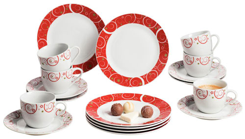 Set cafea 18 piese - Contine: 6 farfurii desert, 19 cm, 6 cesti cafea, 200 ml, 6 farfuriute, 15,3 cm. Material: Portelan. Pret 59,99 lei.
