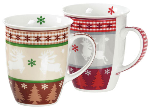 Cana Craciun - Material: Portelan. Design ren sortat in 2 culori: maro/bej si rosu/verde. Pret: 14,99 lei.