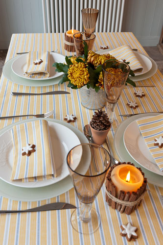 Aceasta ultima propunere pe care ti-o facem este una dulce si va fi pe placul tuturor. Astfel, iti propunem sa iti incanti invitatii cu ceva dulce. Turta dulce este cea mai potrivita, insa poti folosi si bomboane sau biscuiti de casa. Foloseste niste sfoara, pentru a lega tacamurile si servetelele si nu uita sa prinzi si deserturile cadou. De asemenea, poti sa folosesti si niste bete de scortisoara.