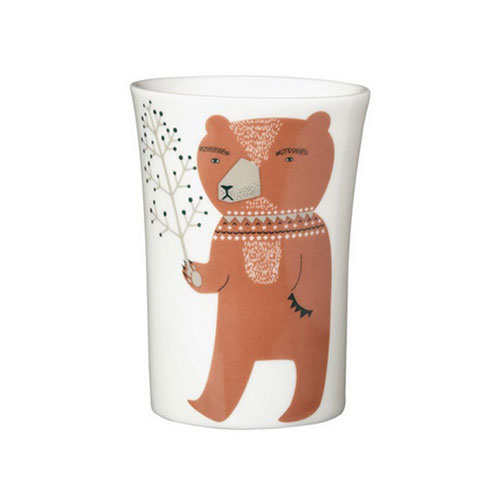 Bear - Premiata in cadrul editiei 2010 “The British Design Awards” ca cel mai bun designer al anului, Donna Wilson a lansat recent o colectie simpatica de portelanuri. Fiecare portelan spune o poveste ce reliefeaza pasiunea Donnei pentru ilustratiile naive, puternic impregnate de nostalgie si umor. Cana Bear face parte din colectia iarna 2013-2014 si ilustreaza un urs ce s-a plictisit de atata hibernat si a iesit la plimbare prin padure dupa un bradut de Craciun, pentru barlogul lui. Pret: 74 lei.