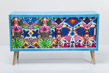 Sideboard Flower Power 2Doors - Comoda cu motive florale, din lemn de pin, MDF, poliester si bumbac. Dimensiuni: 0,7 x 1,2 x 0,4 m.