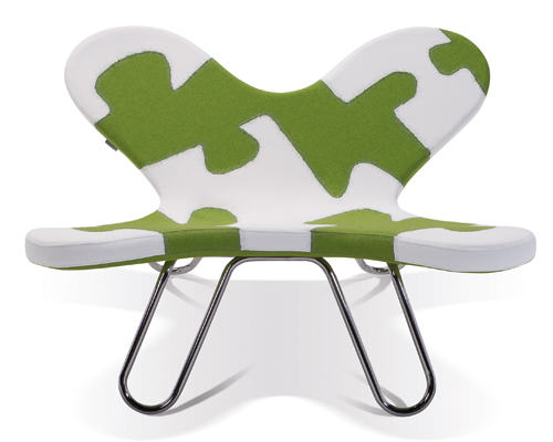 Puzzle - un fotoliu inedit, cu un design de avangardist, ce ofera originalitate oricarei incaperi.. Tapiserie bicolora, cu motiv puzzle, disponibila atat in varianta de material textil, cat si piele. Picioare metalice tubulare, cromate, diametru 2.5 cm. Spatar din lemn stratificat, captusit cu poliuretan expandat. Dimensiuni: 127 x 93 x 83 cm. Pret la cerere