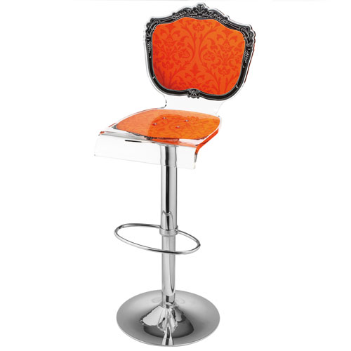 Scaun de bar inalt, sezut din plexiglass si picior din aluminiu, pret la cerere.