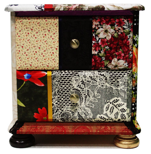 O alta metoda creativa, cu ajutorul careia poti schimba aspectul unei comode este sa folosesti materiale textile. Imbraca usile, sertare si blatul comodei in materiale textile cu imprimeuri si culori diferite. Pune-ti imaginatia la contributie si realizeaza compozitii cat mai inedite. O comoda de tip patchwork se va incadra perfect intr-un spatiu shabby chic, boho chic sau eclectica.