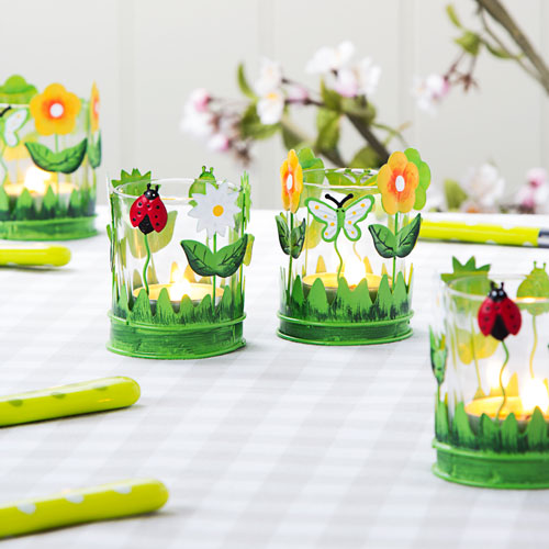Intrucat lumanarile nu trebuie sa lipseasca de la nicio masa festiva, este ocazia perfecta sa realizezi niste suporturi pentru lumanari, cu motive pascale. Foloseste niste pahare si picteaza diferite motive specifice. De asemenea, poti lipi diferite imagini sau poti imbraca paharele in sfoara. O alta propunere este sa realizezi ghirlande de mici dimensiuni, din crengi, care sa semene cu niste cuiburi si in interiorul carora sa amplasezi paharele cu lumanari.