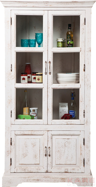Taberna Display Cabinet White 4 Doors - Cabinet alb, cu aspect antichizat, din lemn de mango.