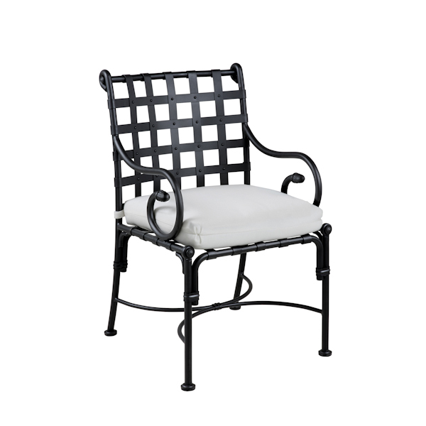 Scaun Kros realizat din fier forjat, cu perna tapisata cu material textil impermeabil. Dimensiuni: 59 x 54 x 91 cm. Pret 495 euro + TVA.