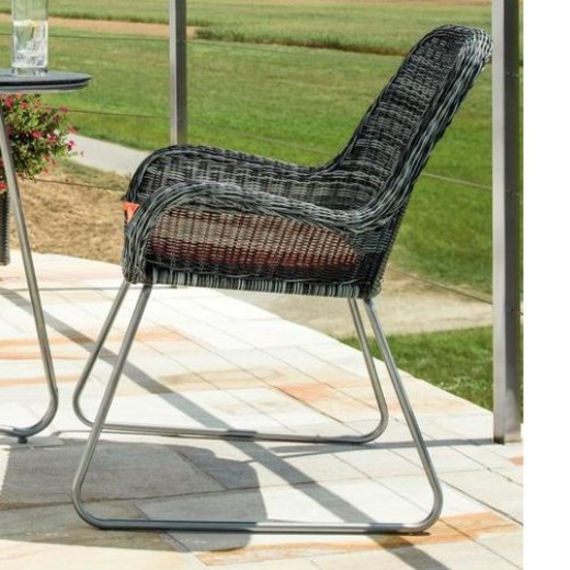 Scaun Catania - Cadru otel vopsit in camp electrostatic. Ratan artificial albastru - gri. Nu include perne. Dimensiuni: L 71. H 86. A 60 cm. Pret: 299 lei.